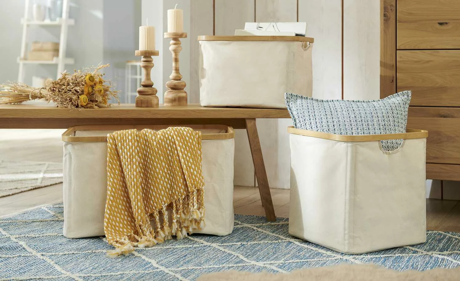 - Material: Polyester, Bambus, Metall