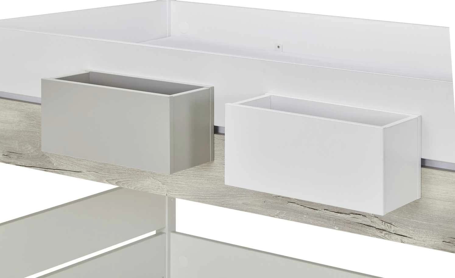 Diese Regalbox von PAIDI ist eine praktische Ergänzung für das Spielbett Kira. Sie wird einfach zwischen Bettgestell und Absturzsicherung platziert. Die Box kann mit der Öffnung nach vorne oder nach oben moniert werden – so wie es besser passt. Alle Oberflächen sind mit Melamin beschichtet und deshalb unempfindlich für Kratzer. Der kreideweiße Farbton harmoniert auch optisch mit dem Bett.